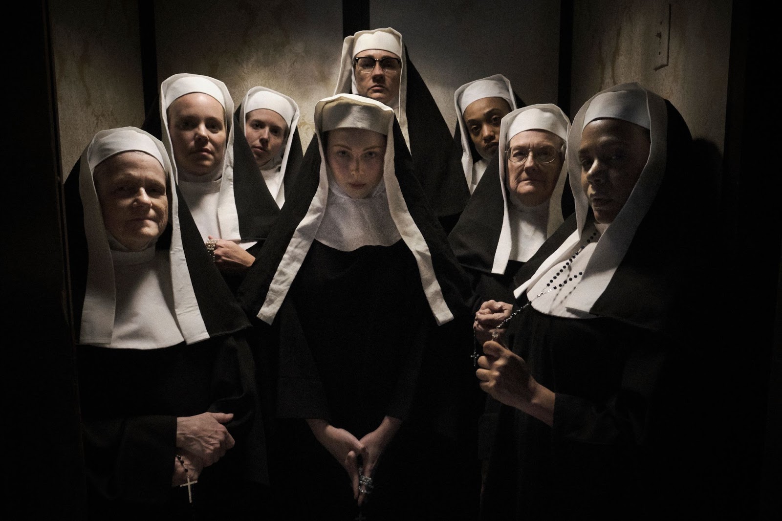 While the tension between some of the Sisters and the men suddenly in their mist allows for some fun innuendo, things get deadly serious quickly as Father Donaghue performs an exorcism rite on Agnes, much to the shock of her fellow Sister (and recent confidant) Mary (Molly C. Quinn).