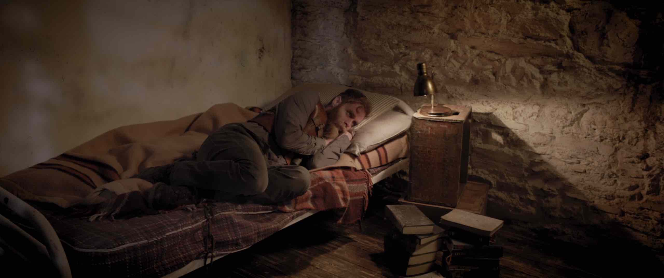 Isaac (Jonathan French, A Soldier’s Voice) is a partial amnesiac who has fallen on hard times. Desperate to make ends meet, he begrudgingly accepts an offer from his landlord Barret (Ben Caplan, Band of Brothers) to watch over his niece Olga (Leila Sykes, Missing Something) for a few days. Unfortunately for Isaac, the job isn’t as easy as it seems — the decrepit house is on a secluded island, and he is forced to wear a harness at all times to restrict him from certain rooms.