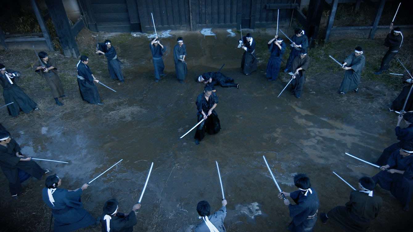 Directed by Yuji Shimomura (Death Trance), the film stars the acclaimed Japanese action star and choreographer Tak Sakaguchi (Versus) as the titular “Crazy Samurai.” Based on the real-life duelist Miyamoto Musashi, the film centers on a cataclysmic battle between Musashi (Sakaguchi) and the 400 students of the Yoshioka school. The reasons for this battle are pretty murky, but what preamble there is exists just to set up the brutal fight sequence that takes up the majority of the film.