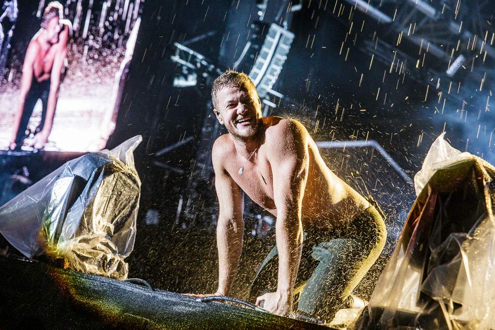 Two songs into Imagine Dragons’ rain-drenched set, the call was made to evacuate the massive FEQ grounds due to severe weather (Foo Fighters also had to cut their set short due to a storm at the festival back in 2015).