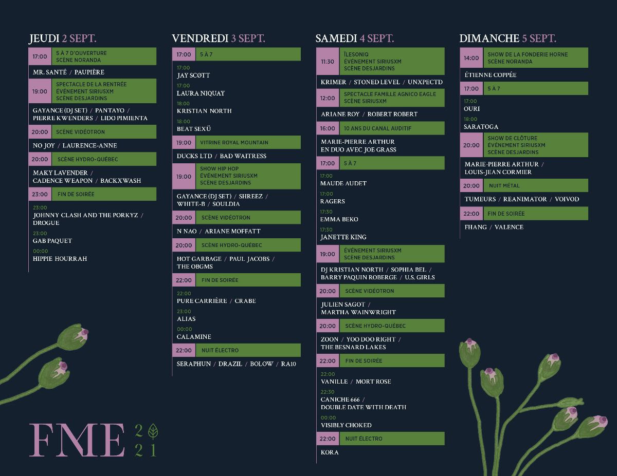 FME de l’Avent goes down from August 6-8 at arc Riverain de Lachine. FME in Rouyn-Noranda runs from September 2- 5.