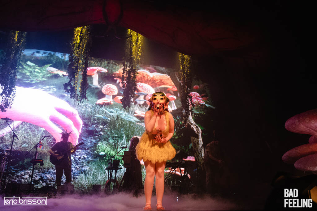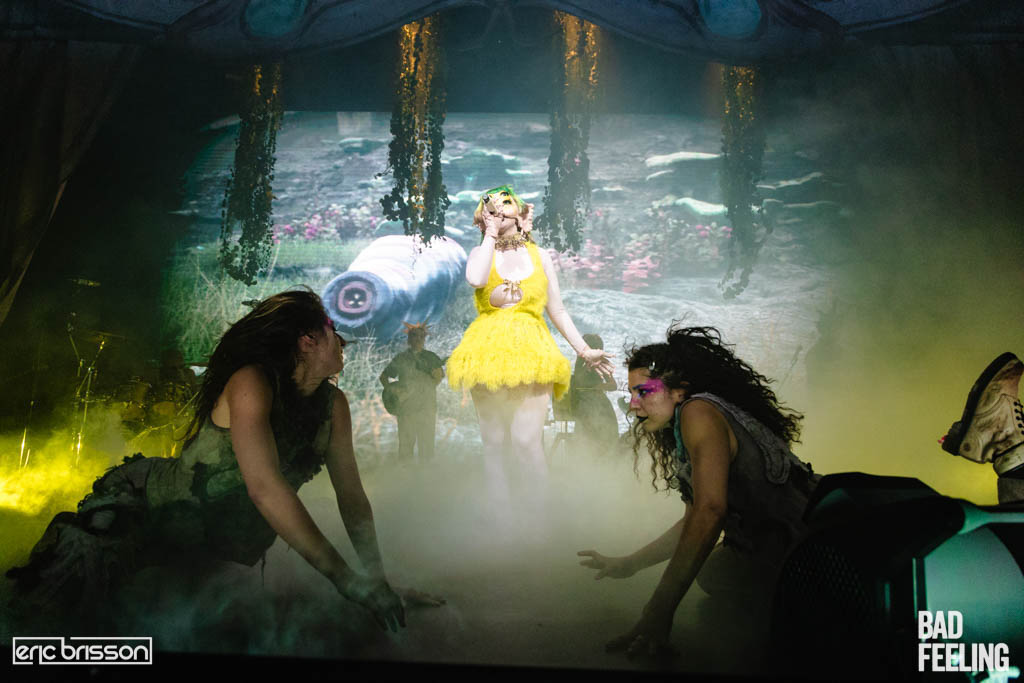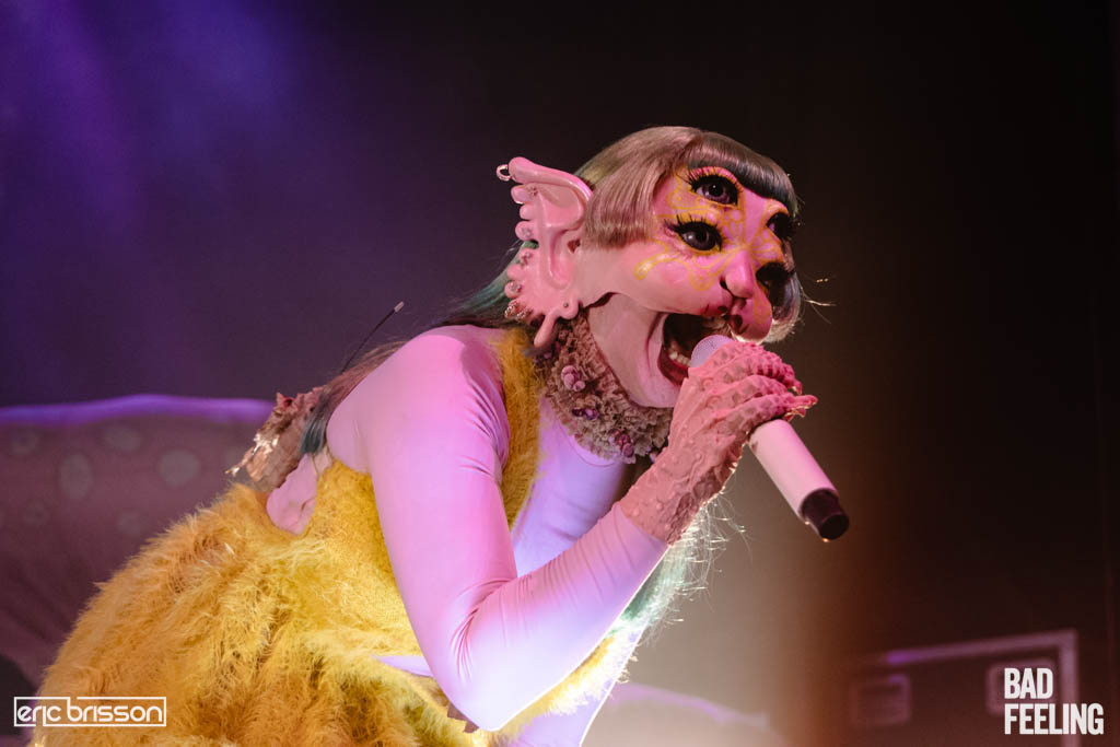 The masked alt-pop singer wrapped up her current Portals tour at Montreal’s MTelus theatre on July 15, delivering a wildly theatrical stage show that looked like someone dosed The Muppet Show band with LSD.