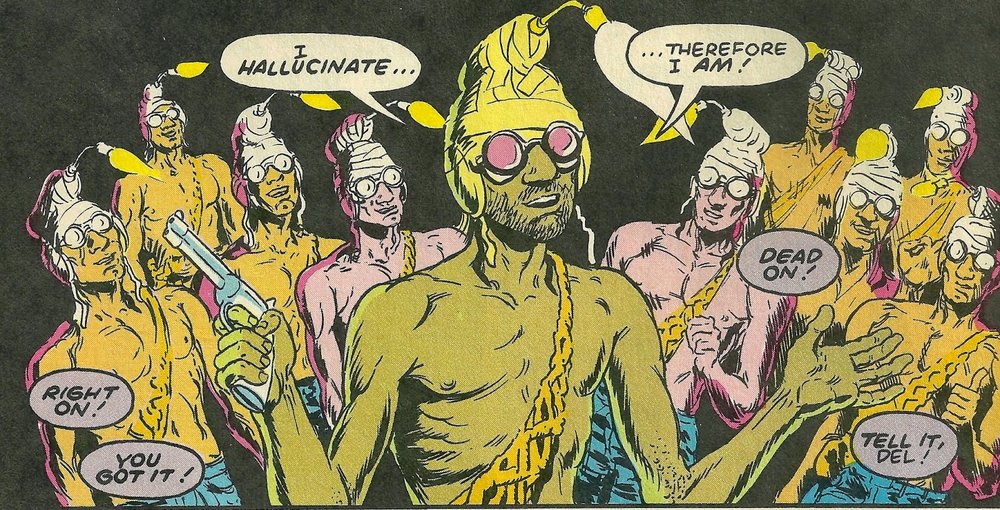 The comic book was sort of the first part of the structure that came into being. We had found some old copies of [Wasteland] and were like, “This is really interesting.” I never knew that D.C. in the ’80s was doing stuff that would rival Drawn & Quarterly or Dark Horse Comics, it was pretty groundbreaking stuff. There’s a lot of breaking the mold in the comic book. And then we were also looking at it and thinking, it’s kind of interesting, here’s a guy, his life work was improv — he says it in the movie — it’s like fireworks, once it’s gone, it’s gone. It’s there for a moment then it’s gone. So there’s really very little of his work that is documented, and he’s an obscure figure, so there aren’t that many interviews with him or whatnot. So we thought the comic is a really good way to see him and be with him and be with the myths that he chose to discuss.