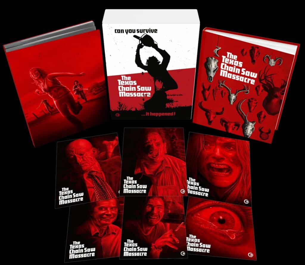 Known for their comprehensive box sets of films like Dawn of the Dead and Drive, Second Sight has pulled out all the stops for this 3-disc Regions 2 (UK) release. Featuring a new 4K UHD Dolby Vision transfer of the 16mm film, the package boasts a slew of extras including the feature-length documentary The Legacy of the Texas Chain Saw Massacre, five (!) audio commentaries, and hours of new and archival interviews. The hefty set is rounded out with a beautiful 190-page hardcover book featuring new essays and photos and a collection of 6 art cards.